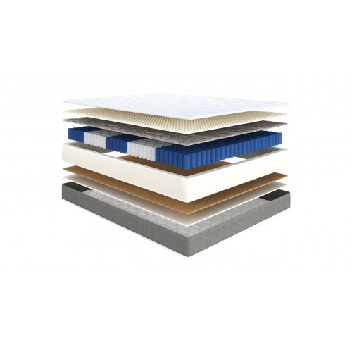 5-ти зональный пружинный блок, изготовленный из проволоки различного диаметра, поддерживает каждую часть тела индивидуально: голову, плечи, спину, бёдра, ступни, - снимая нагрузку с позвоночника и напряжение с мышц и суставов.
