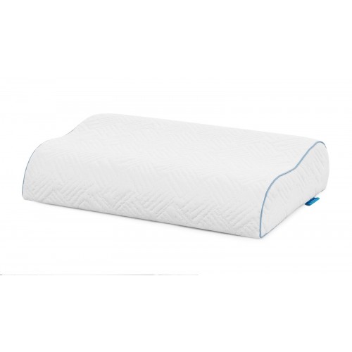 В основе подушки - пена с 'памятью' формы, имеющая разную высоту и подстраивающаяся под физиологические особенности спящего, повторяющая его движения и бережно поддерживающая голову и шею. Чехол выполнен из мягкого трикотажа, который обеспечивает дополнительный комфорт на протяжении всей ночи. Декоративный голубой кант придает подушке нежную элегантность.